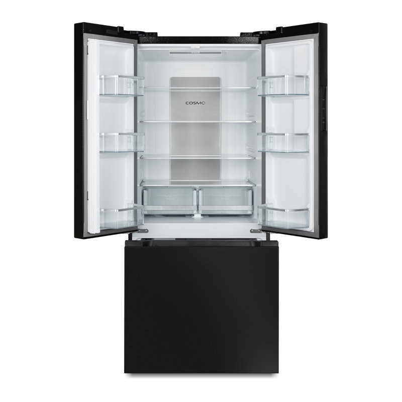 Cosmo 30 In. Vista Collection 17.5 Cu. Ft. Counter Depth 3-door French Door Refrigerator, Freezer Drawer, Matte Black COS-RFFV183RBK