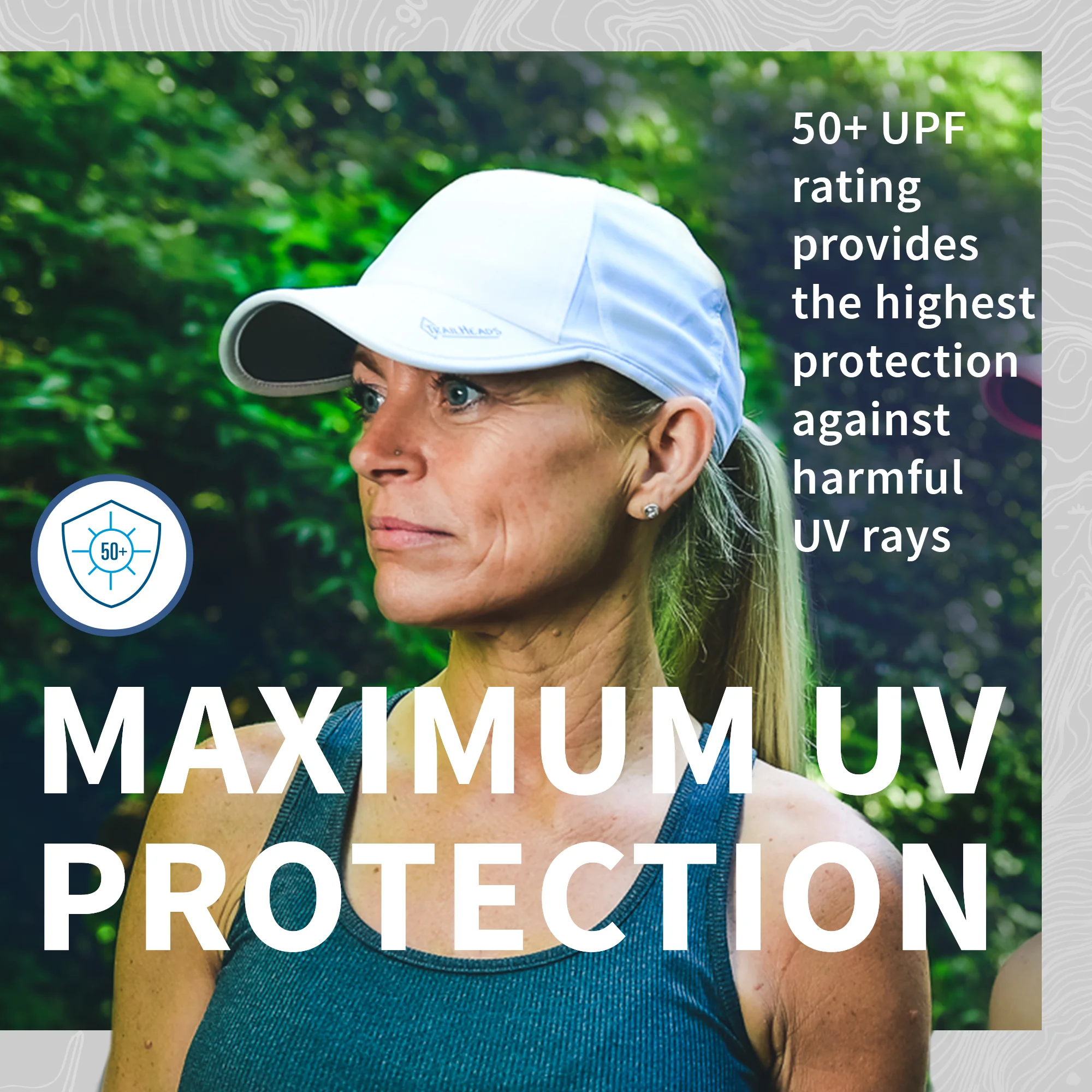 - UV Protection: Our women’s running hat offers excellent UV protection with a 50+ UPF rating, ideal for outdoor activities like tennis or golf.